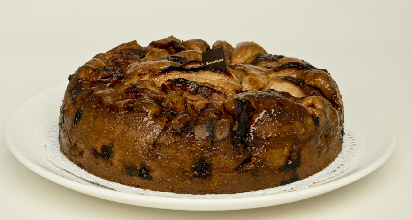 Lactose free light sponge topped with cinnamoned bramley apples.